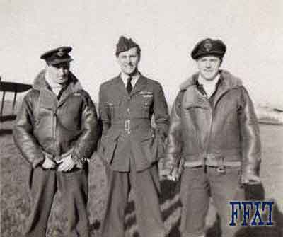 The Red Indian Squadron under S/L W.A. Conrad, DFC, Richmond, Ont., shot up four trains. F/O R. Cook of Clinton and P/O Bill Warfield of New York City teamed in a Joint attack on one train. Warfield went for the flak car in the centre of the train and then fired his guns at another in the rear, while Cook stopped the engine with a couple of well-placed bursts of cannon fire.